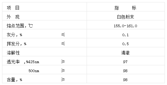 本品為白色粉末,熔點(diǎn)155-161℃??扇苡诒⒓状?、氯仿,微溶于甲苯,不溶于水。作為受阻酚類抗氧劑,用于有機(jī)聚合物,如塑料、合成纖維、粘合劑和彈性體。是一種有效的、無(wú)色污的穩(wěn)定劑,特別適用于聚酰胺聚合物和纖維料。該產(chǎn)品與亞磷酸酯類、硫代酯類抗氧劑及受阻胺類光穩(wěn)定劑配合使用,有良好的協(xié)同作用。用量在0.05%-0.5%之間。