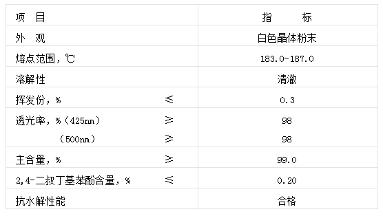 本品為白色結(jié)晶粉末,分子量646.94,熔點183-187℃,溶于汽油、苯、甲苯等。相對密度為1.03(20℃時),本品為輔助抗氧劑,與主抗氧劑(如1010、1076等)并用于聚乙烯、聚丙烯、聚苯乙烯及聚酰胺等聚合物中,使加工穩(wěn)定性明顯提高,同時對長效穩(wěn)定性要求較高的場合,與硫代酯類輔助抗氧劑并用效果顯著。不著色不污染,耐揮發(fā)性好,一般用量0.05-0.5%